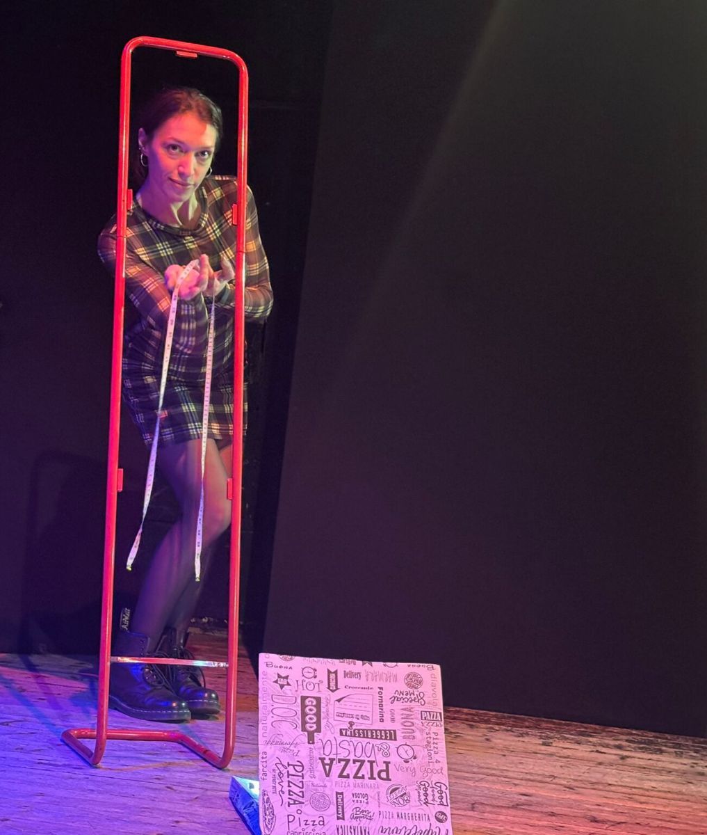 E poi lei: La Pizza! HUNGRY è una ‘dramedy’ dai sottotoni grotteschi, è una beffarda stand up che esplora con un linguaggio contemporaneo i temi del disordine alimentare, del culto del sé indotto dai social e da un’industria abituata a spremere fino a prosciugare le persone che ne fanno parte, tutto per la ricerca della cosí ambita perfezione. Uno spettacolo che esplora il percorso verso l’emancipazione da se stessi e del proprio riscatto sociale alla ricerca delle radici mistiche del digiuno intermittente. Gina è un’attrice arrivata finalmente al momento decisivo della sua carriera e il suo Ego la assiste ad ogni passo, con sfacciato sarcasmo e un po’ di sadismo.