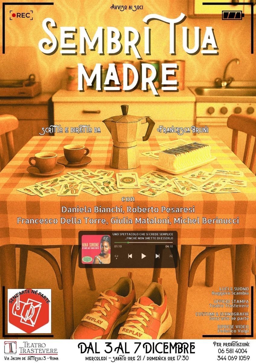 Con Sembri tua madre, Francesca Bruni prosegue il percorso iniziato con Maria Antonietta – L’ultima regina di Francia, Paolo & Francesca e Il Mostro dagli Occhi Verdi (spettacolo che ha inaugurato la stagione del Teatro Trastevere 2025), continuando a esplorare le relazioni umane attraverso un linguaggio teatrale che intreccia ironia, emozione e un sottile richiamo cinematografico, cifra stilistica ormai inconfondibile del suo teatro.
