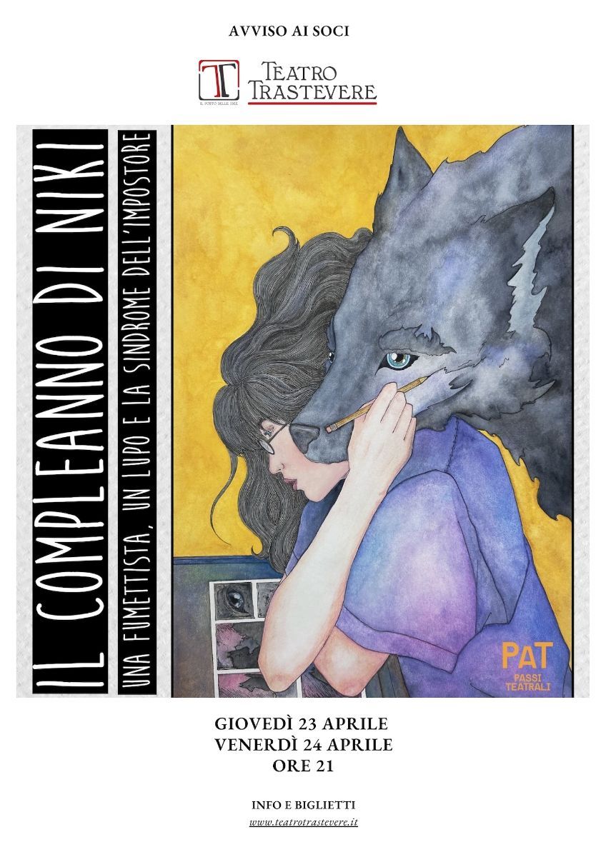 Torna a Roma, dopo il debutto al ROMA Fringe Festival, Il Compleanno di Niki, commedia drammatica scritta e diretta da Pier Vittorio Mannucci. Giovedì 23 aprile e venerdì 24 aprile, sul palco del Teatro Trastevere, Gledis Cinque ed Erica Del Bianco vestono rispettivamente i panni di Anna, una fumettista di successo, e Niki, il lupo immaginario protagonista della striscia che l’ha resa famosa.